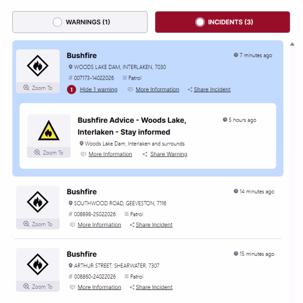 Watch Zone Notifications: One of the standout features of the app is the ability to create “Watch Zones” for specific locations. Users can set up notifications for areas beyond their immediate surroundings, such as a loved one’s home, a workplace, or children’s school, receiving alerts if emergencies arise in those areas. This personalized feature provides peace of mind, empowering Tasmanians to stay informed about locations that matter most to them.