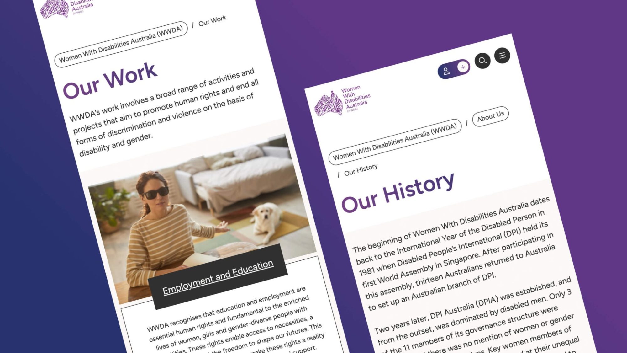 Given the target audience, a critical aspect of our work with WWDA has always been website and brand accessibility. We adhere to the highest standards of web accessibility guidelines (WCAG) to ensure that all users, regardless of their abilities, can navigate the site effectively. We ensure keyboard navigability, screen reader compatibility, and adjustable text sizes to accommodate various disabilities, while maintaining clean, clear and beautiful design.
